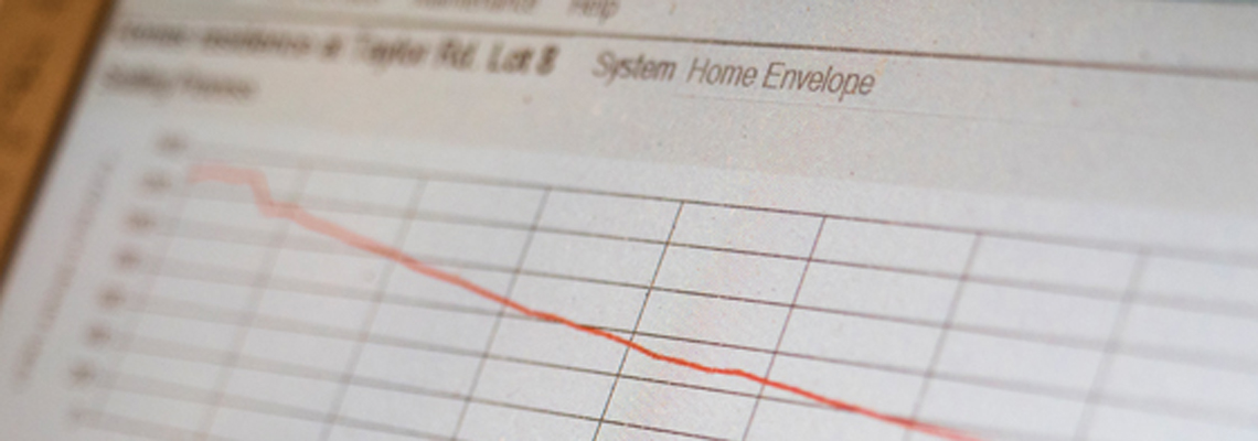 The AeroBarrier system uses a standard, single-point blower door test to measure envelope leakage throughout the process. The sealant is self-guided to the edges of visible and invisible leaks creating a seal, and accumulating across the surface of leaks.